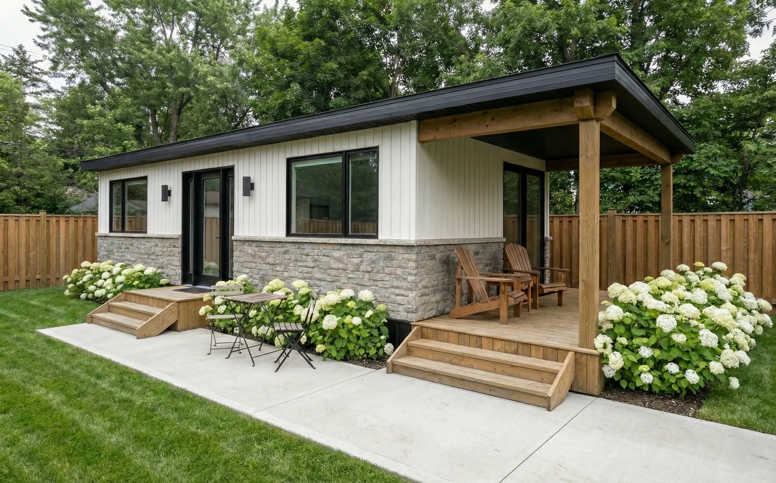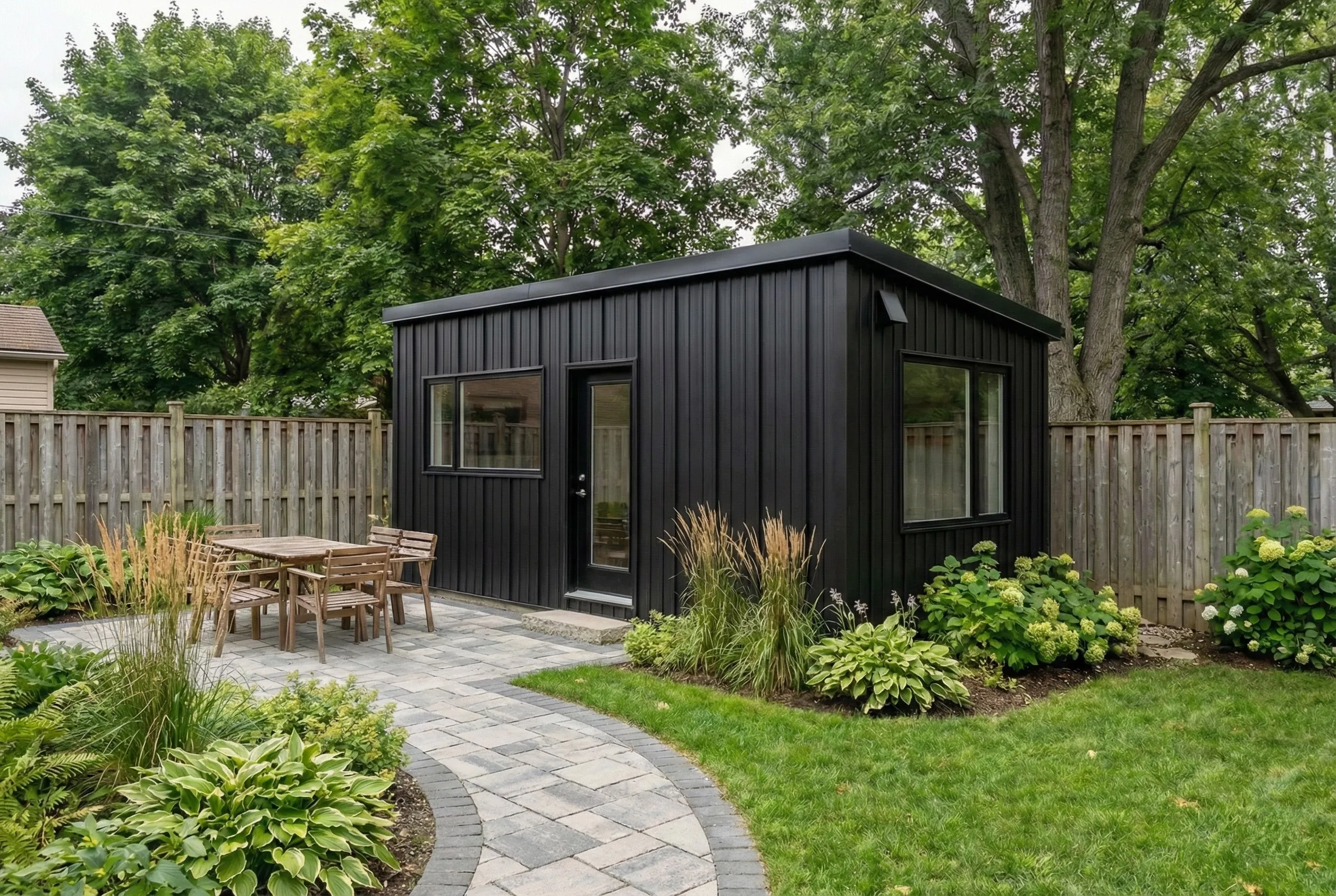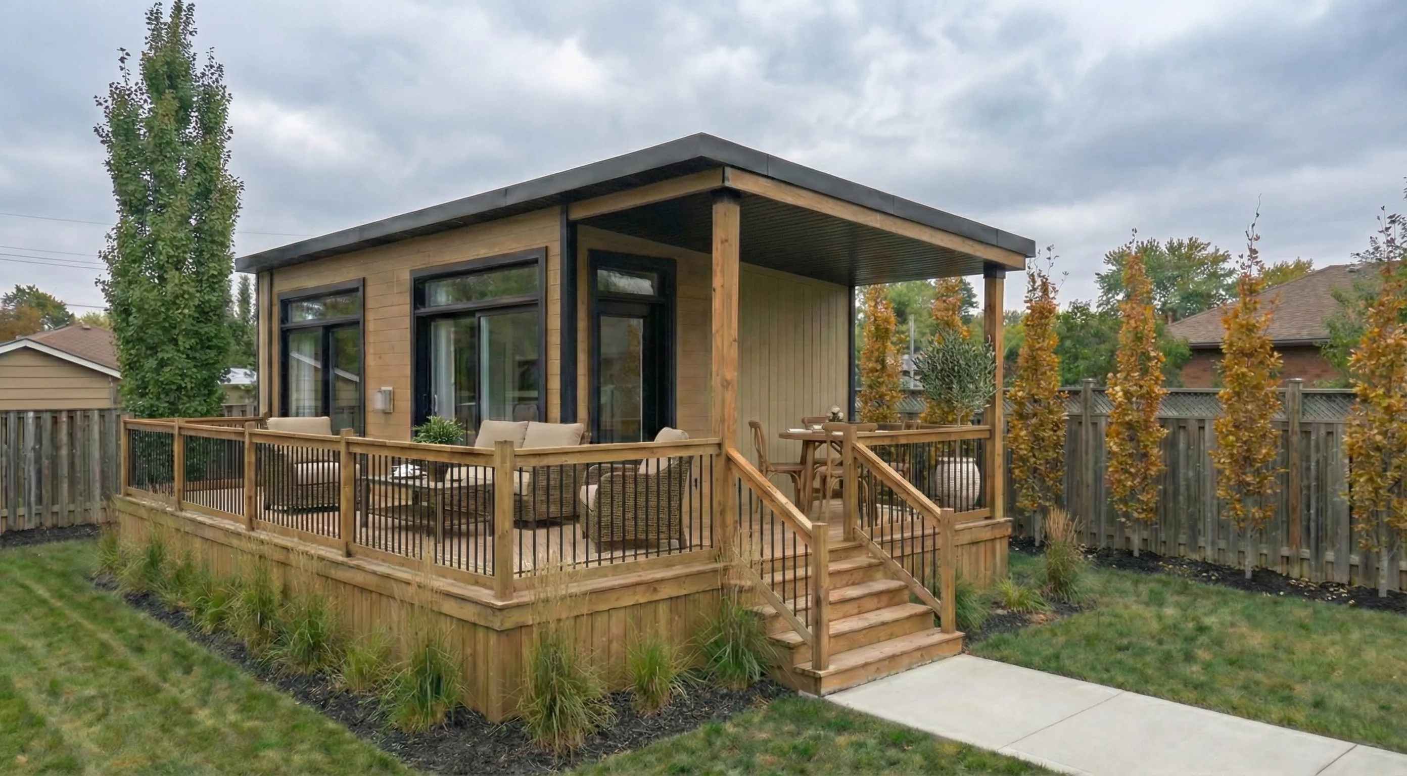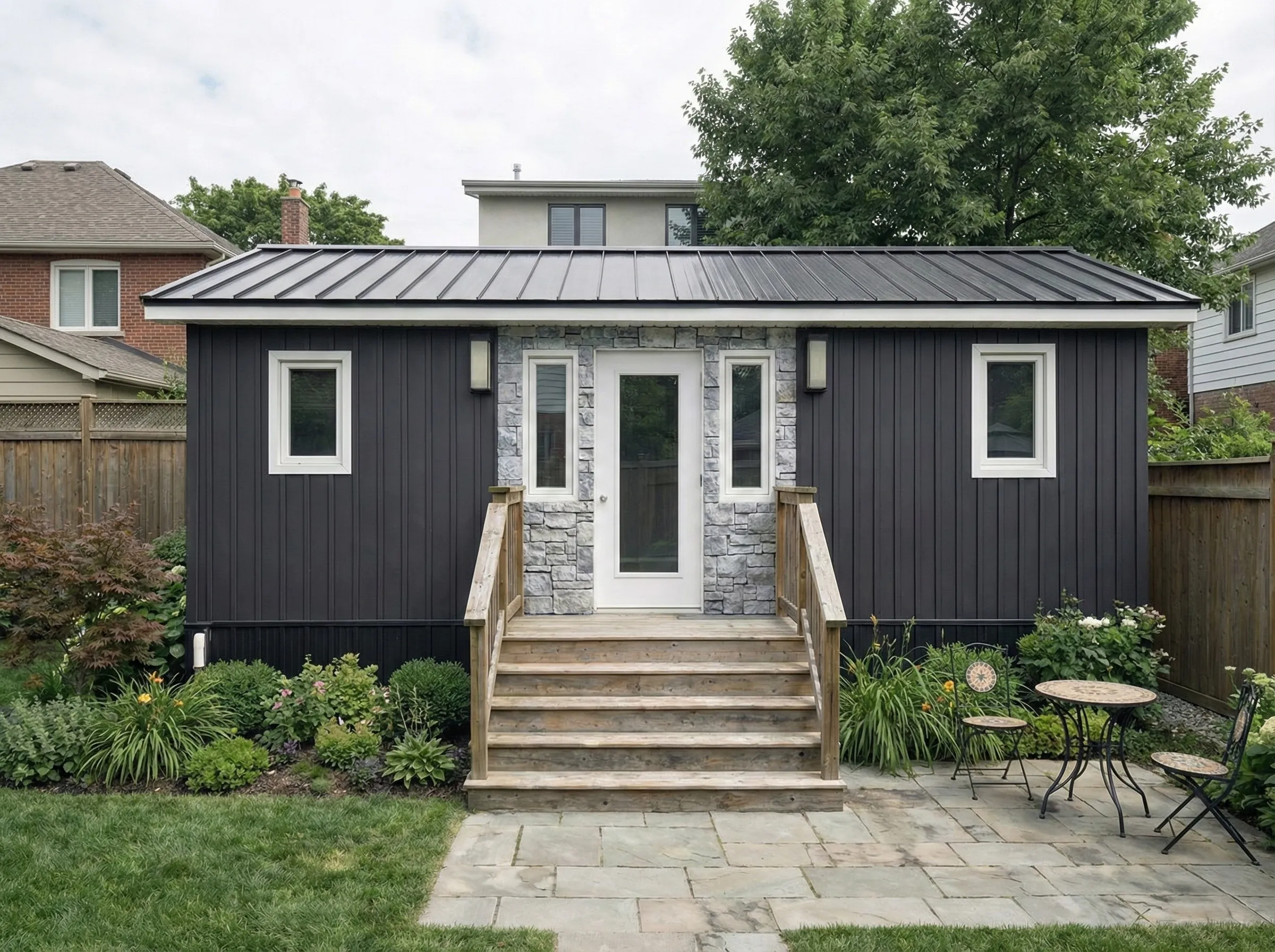 A fully finished, move‑in ready backyard recreational bunkie that fits most lots and budgets.