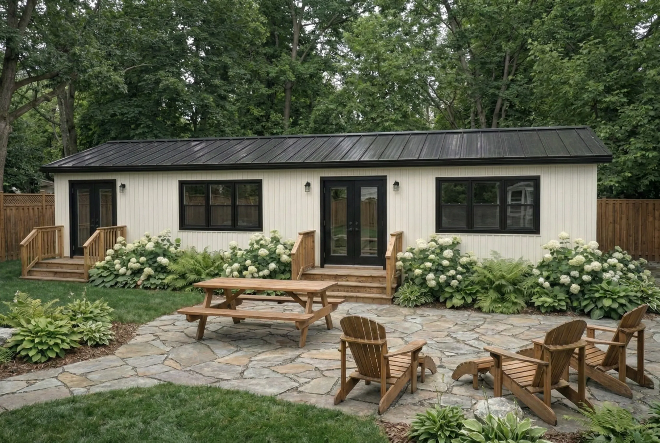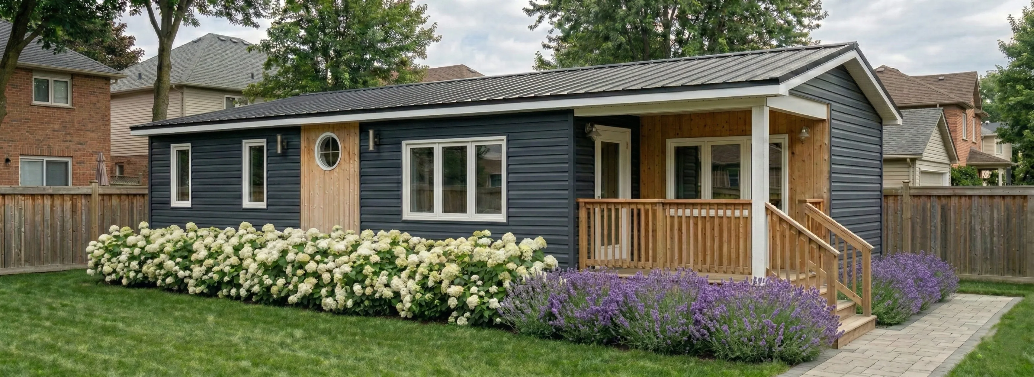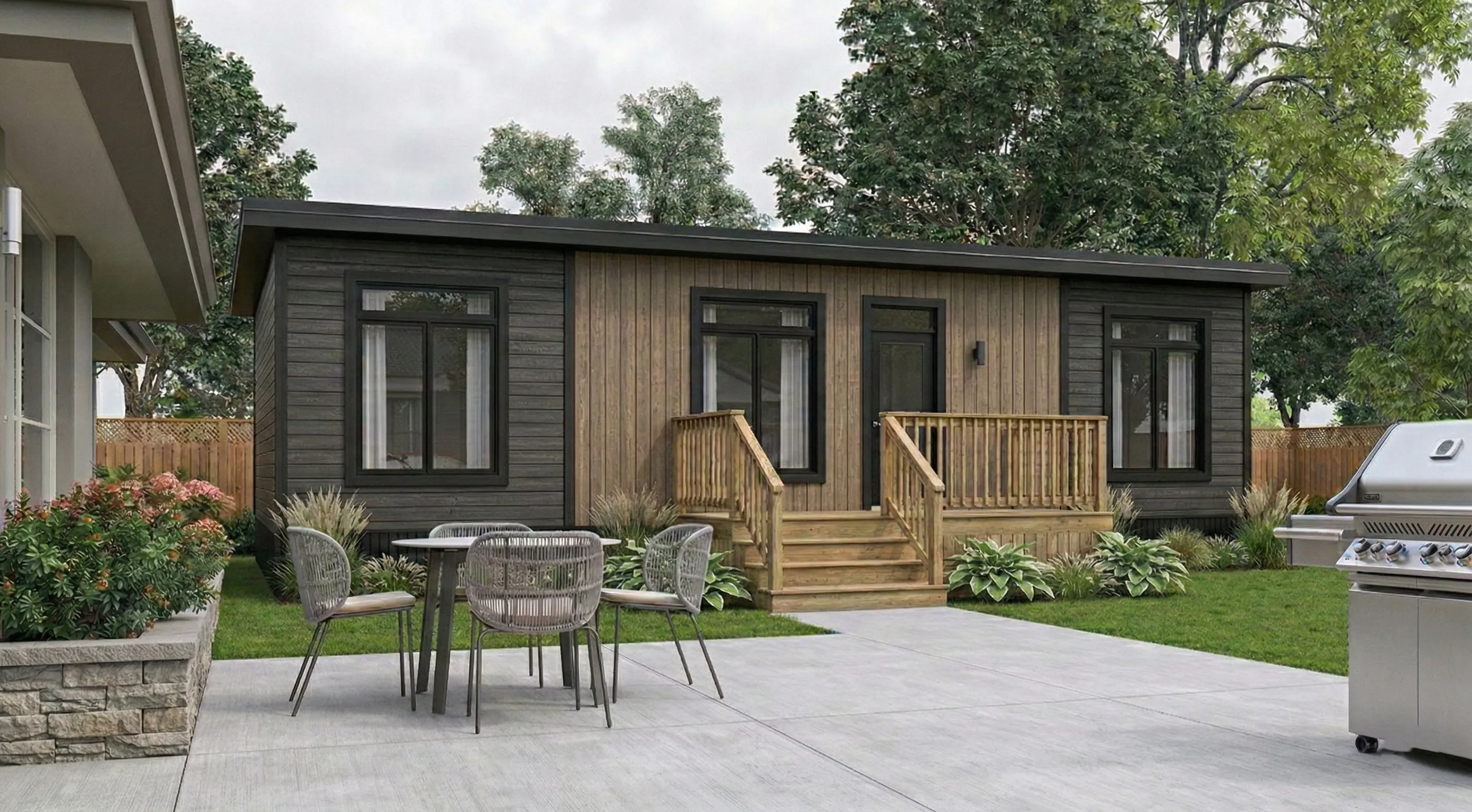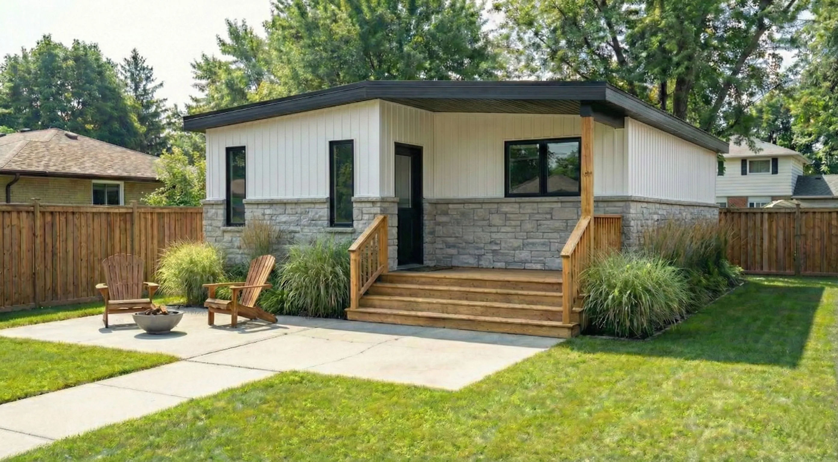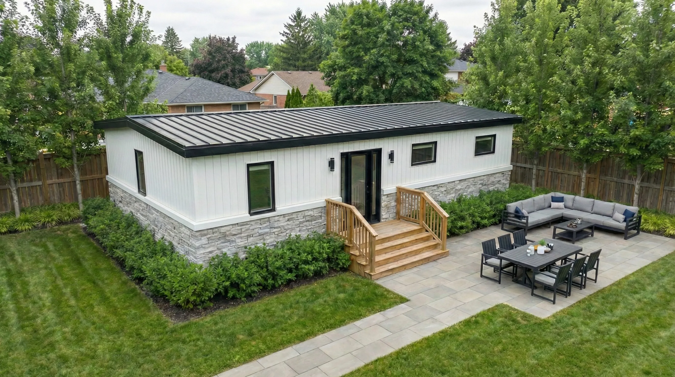 A fully finished, move‑in ready backyard recreational bunkie that fits most lots and budgets.