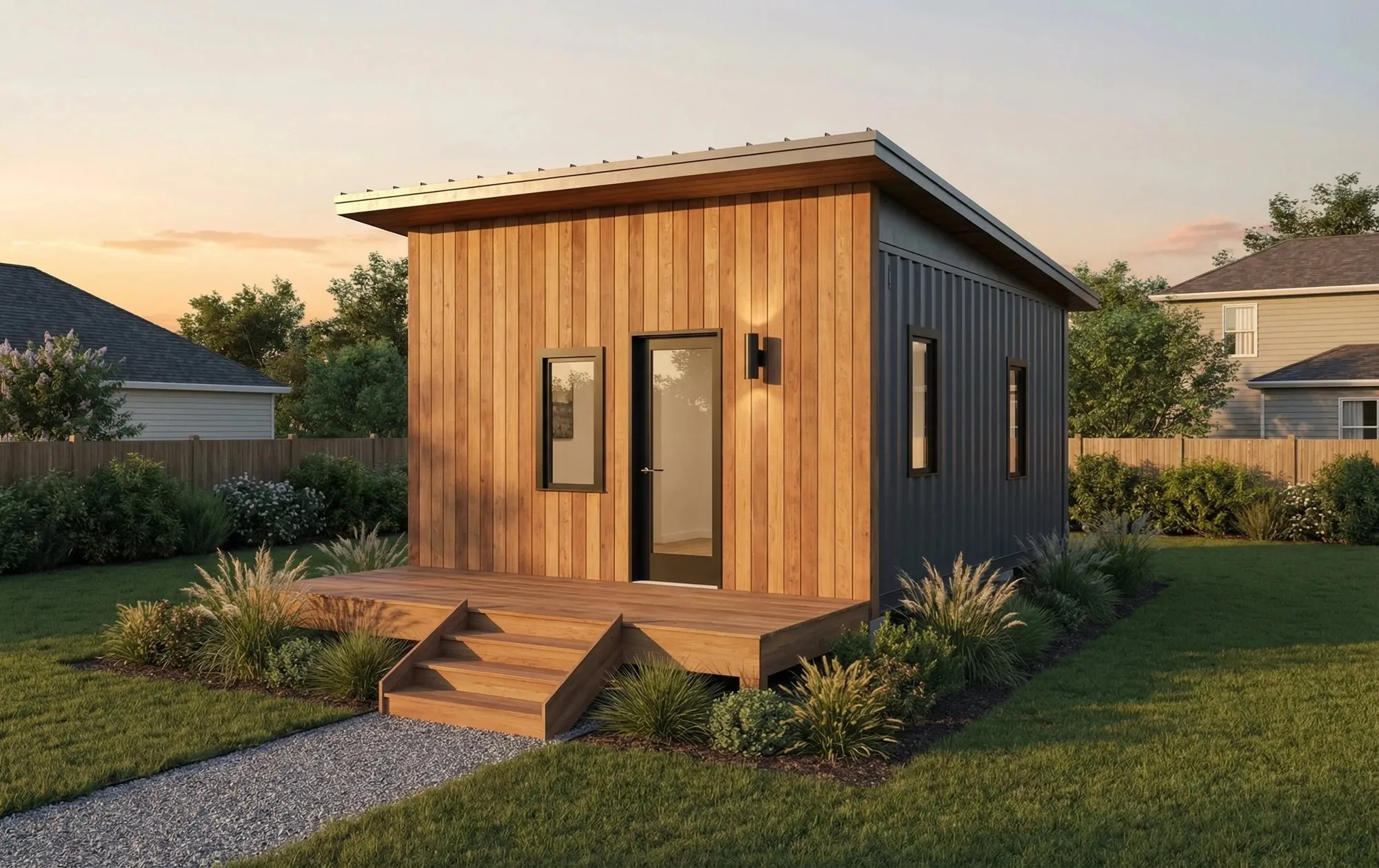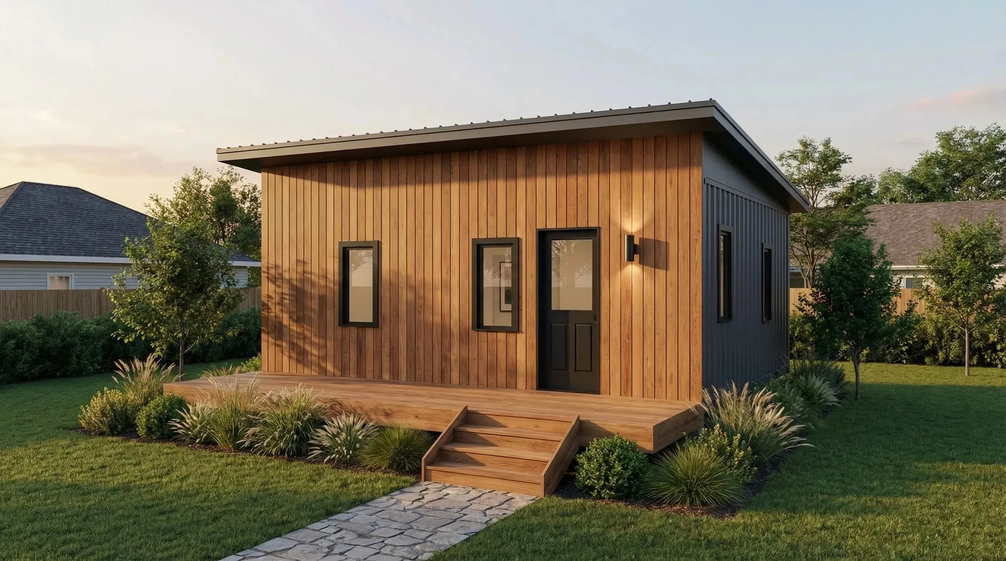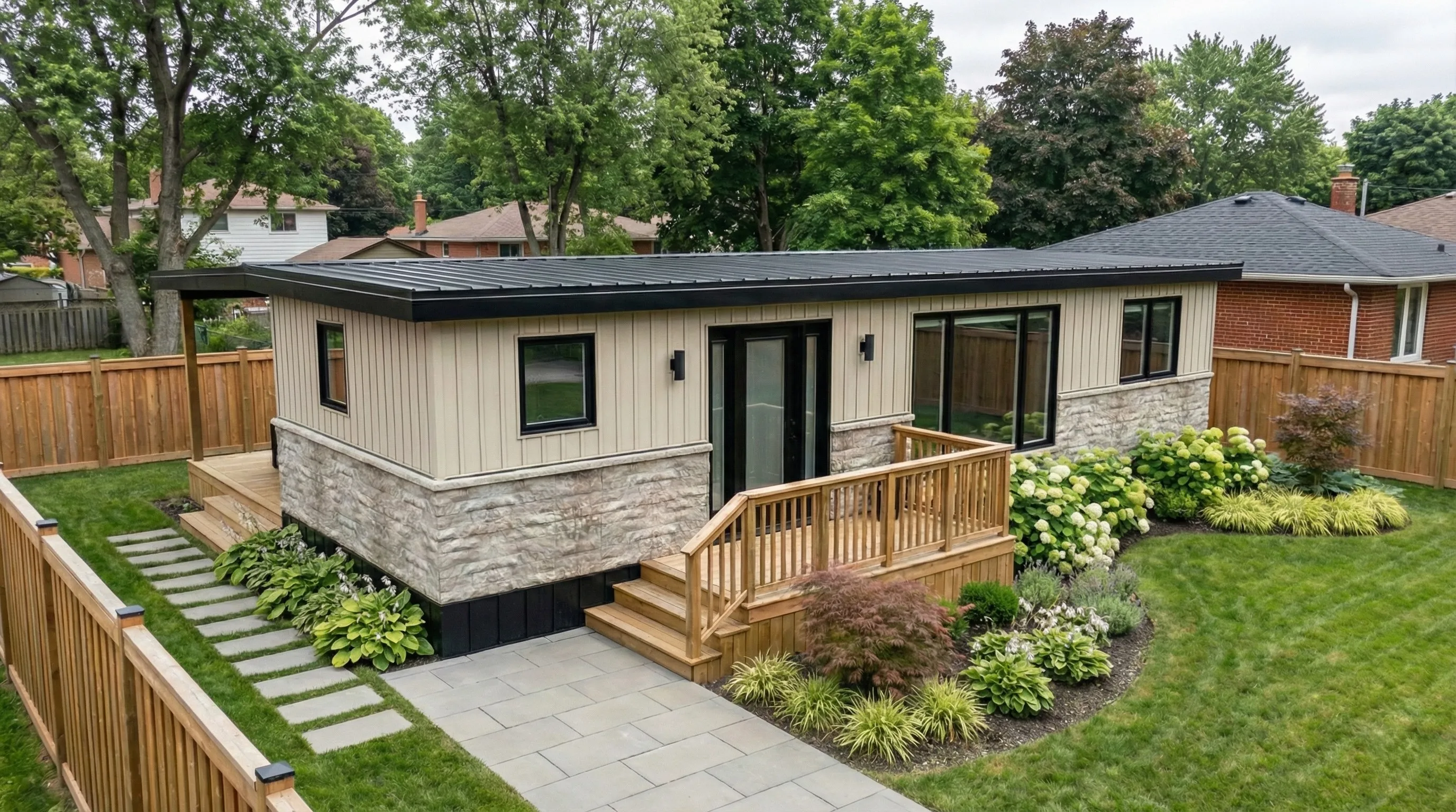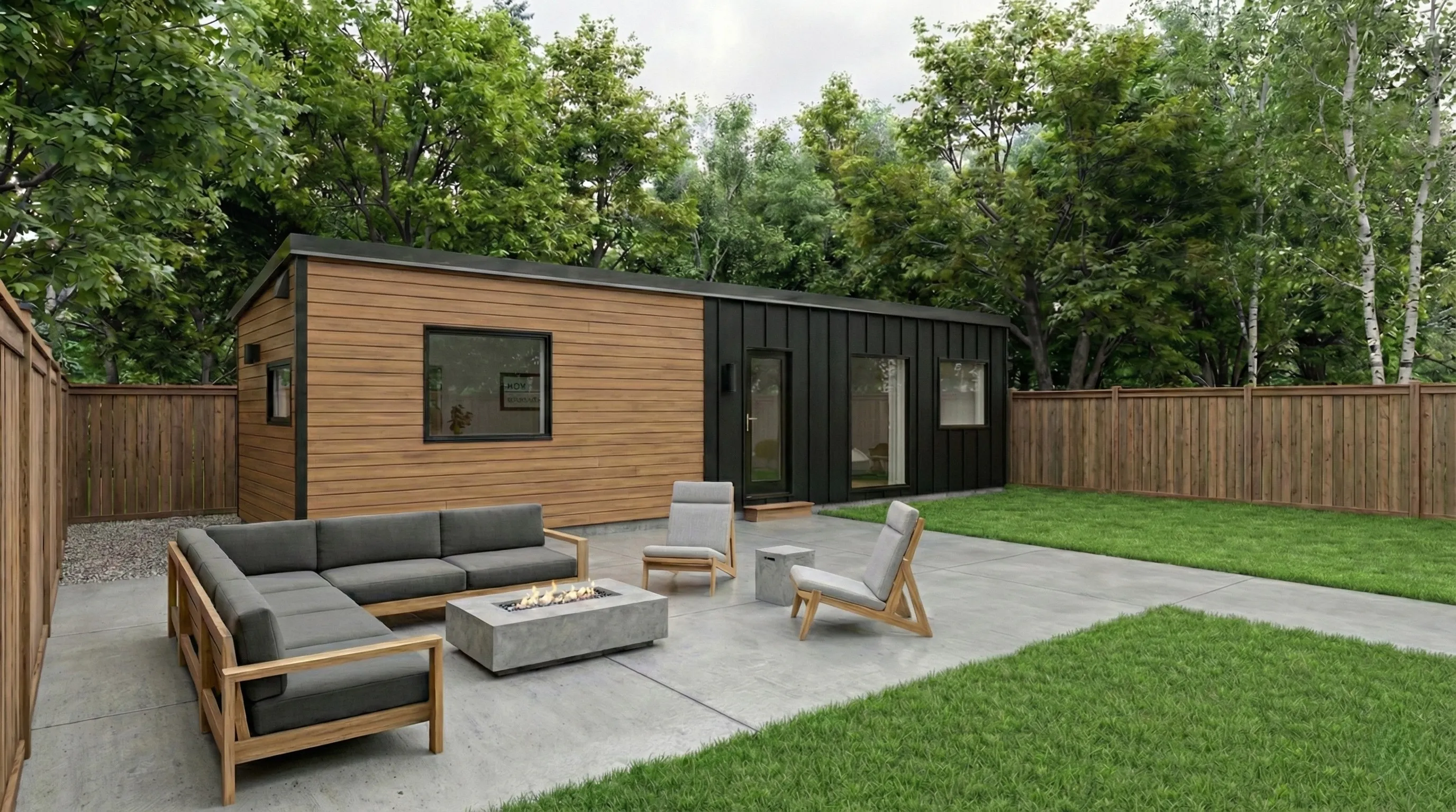 A fully finished, move‑in ready backyard recreational bunkie that fits most lots and budgets.