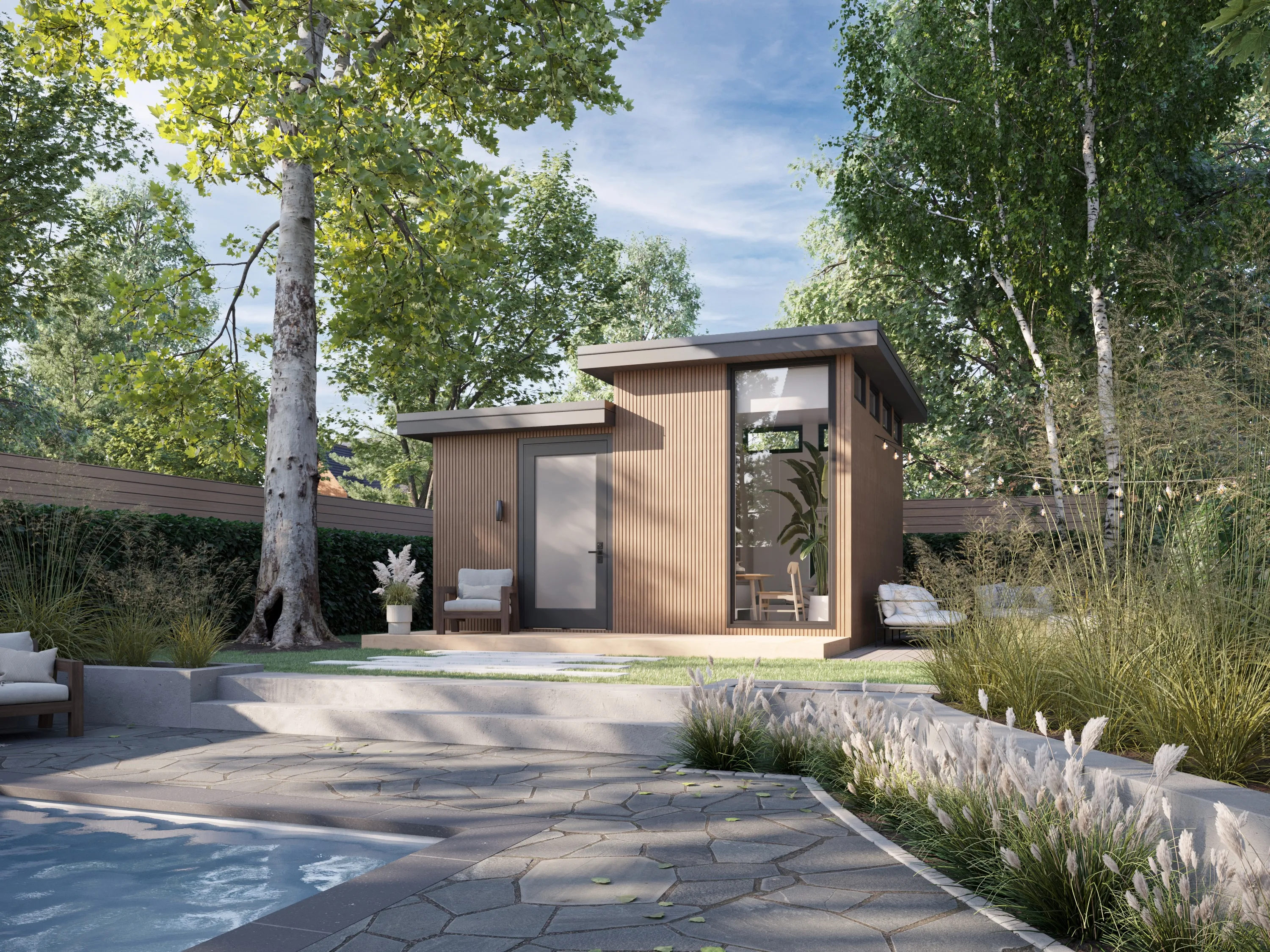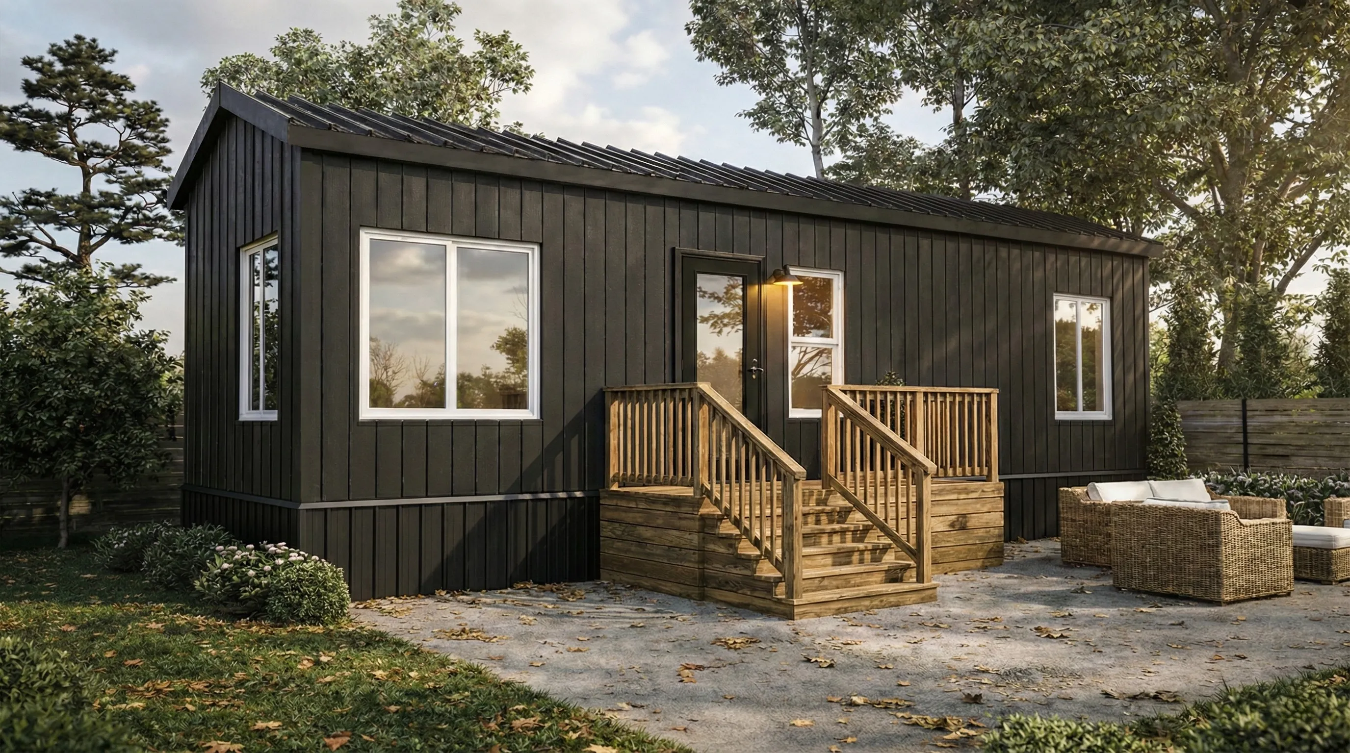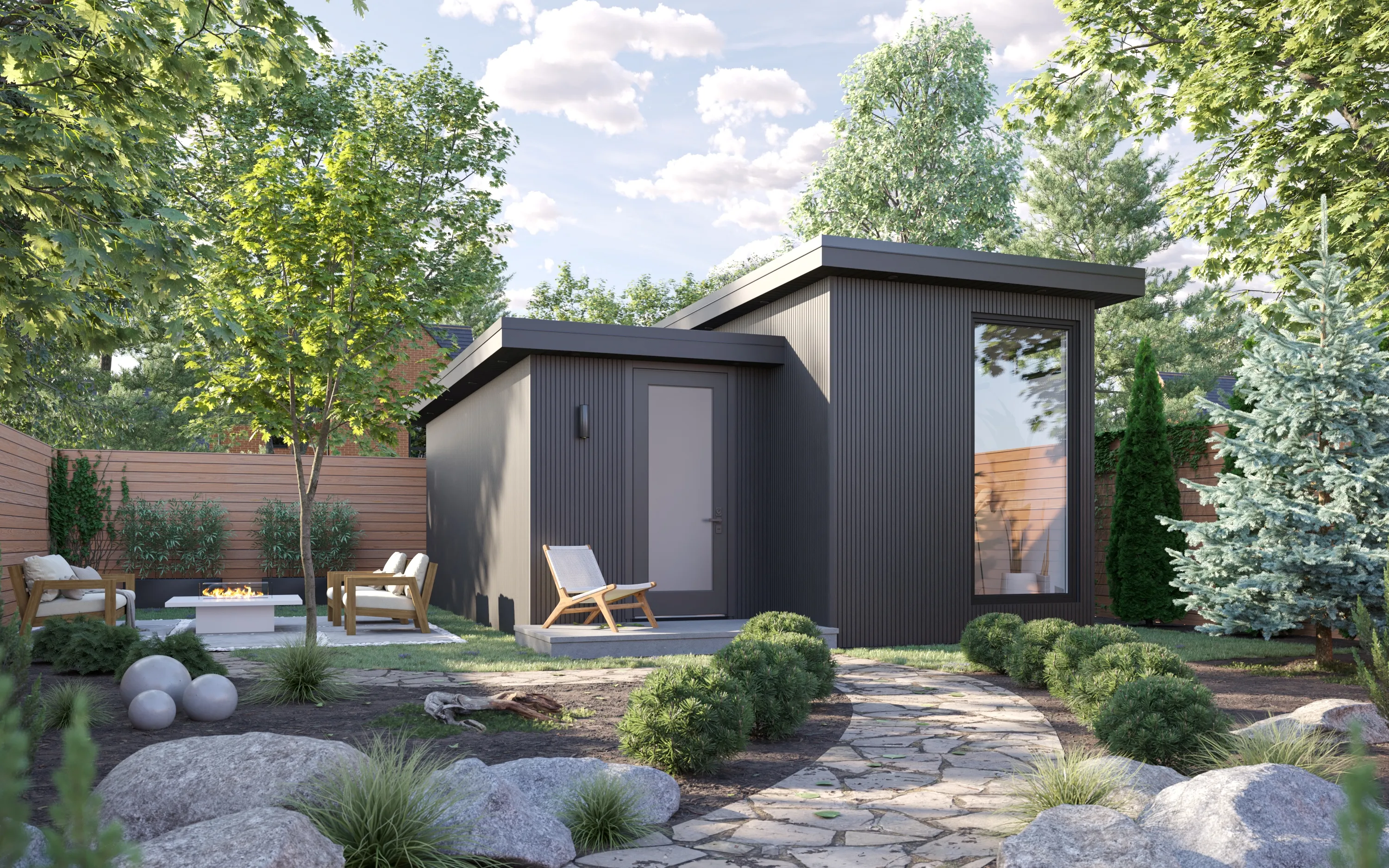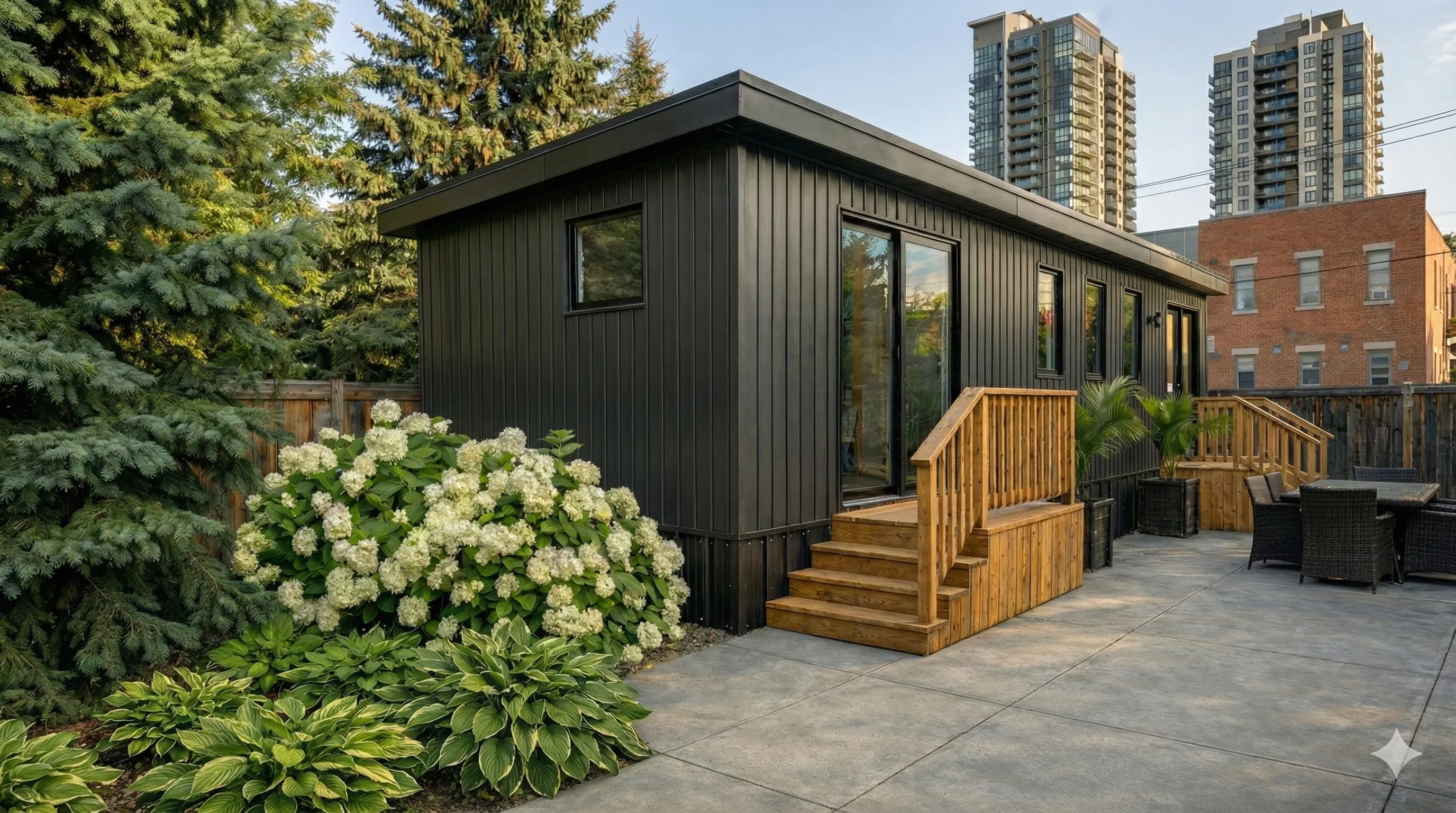 A fully finished, move‑in ready backyard recreational bunkie that fits most lots and budgets.